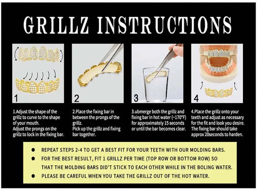 14K Gold Plated Upper & Lower Grillz Set Iced 6 Rows